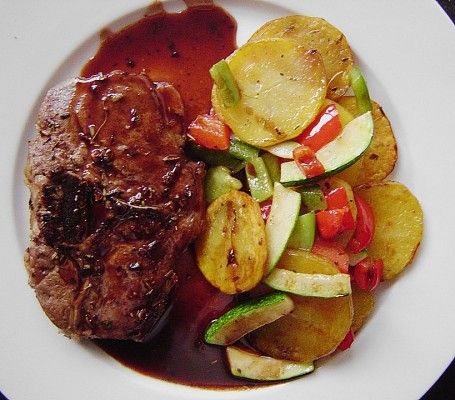 Hola Diana, gran combinación de sabores. Sin embargo, tomé filete de cordero. Como tenía un comensal que come poco hecho y otro que come bien hecho, los sellé por todos lados durante diferentes períodos de tiempo (muy poco y un poco más). Luego se retira la carne y se envuelve bien en papel de aluminio. Luego se agrega la salsa según tu receta y se vuelve a poner la carne brevemente para calentarla. Luego, tomates derretidos y papas con romero. Mi invitado lo disfrutó con placer ;-) LG Kerstin