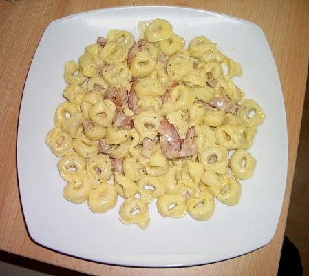 No me gustó tanto ahora. Pero no soy mucho fan de los tortellini. La salsa estaba muy sabrosa pero apagué el jamón con vino blanco.