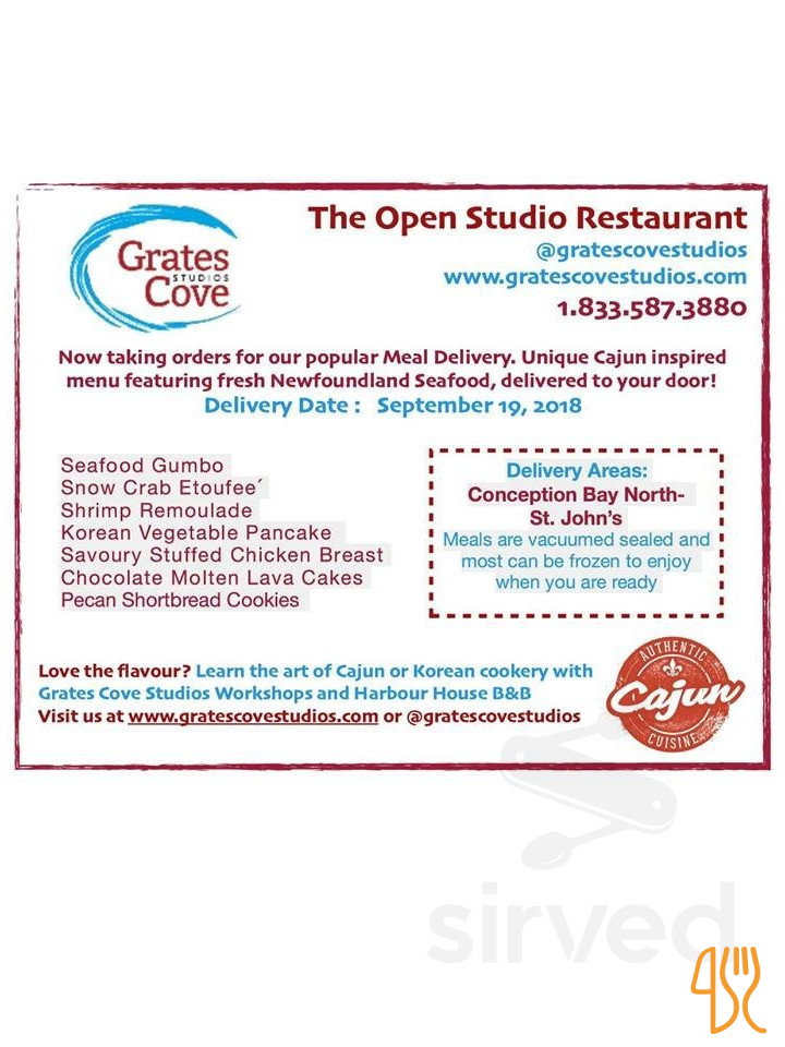★ 4.6 / 5 (86 Evaluaciones)Mariscos Canadiense Fusión VegetarianoGrates Cove Studios