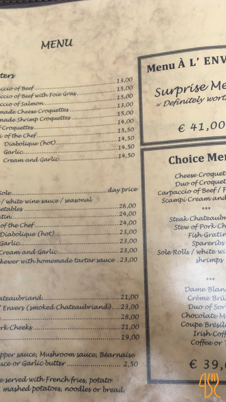 ★ 4.6 / 5 (2764 Evaluaciones)Belga Steakhouse Europea AlmuerzoAu Gourmand