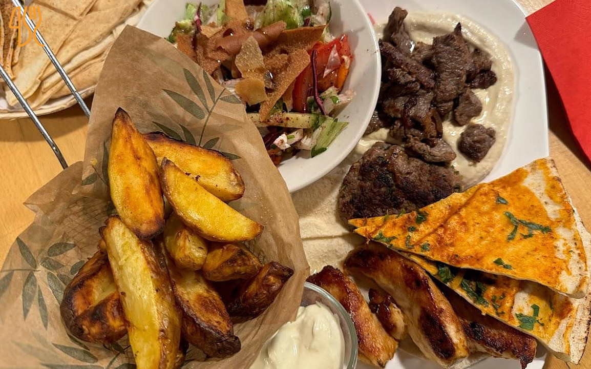★ 4.3 / 5 (1809 Evaluaciones)Sopa Vino Francés Carne Papas FritasChez Hassan